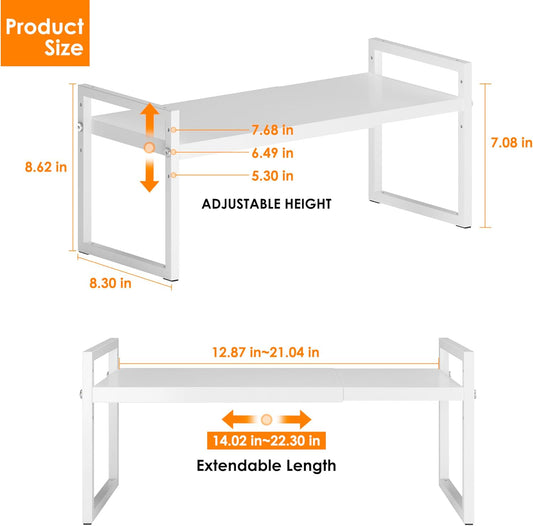 DOLALIKE Expandable kitchen Countertop Organizer, Stackable Cabinet Shelf Organizers, Space Saving Spice Rack Pantry Storage for Bathroom Office Organization (6.9''D*13-19.7''W*7.9''H, White)