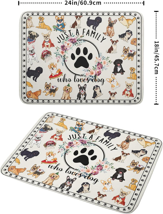 Dog Family Dish Drying Mat Cartoon Pet 18 X 24 in Absorbent Printed Drying Pad for Dog Lover