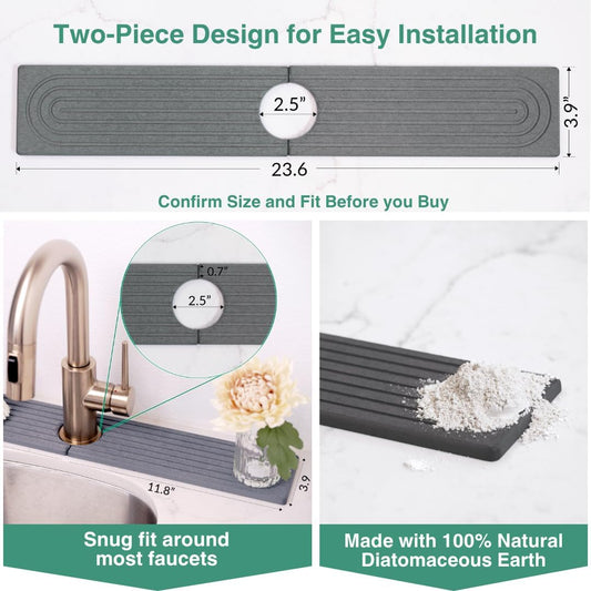 Drying Stone Faucet Mat for Kitchen Sink | Diatomite Sink Tray | Super Absorbent Quick Drying Stone Mat | Kitchen Tray for Counter | Faucet Splash Guard for Bathroom Counter (Dark Gray, 23.6" x 3.9")