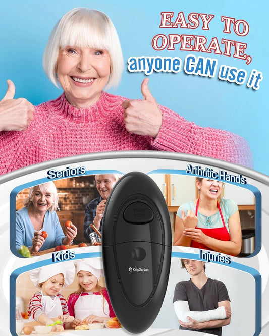 Effortless One-Touch Electric Can Opener, Safety Automatic Can Opener with Smooth Edge Fits All Cans Sizes, Battery operated Can Opener for Seniors with Weak Hands,Arthritis (black)
