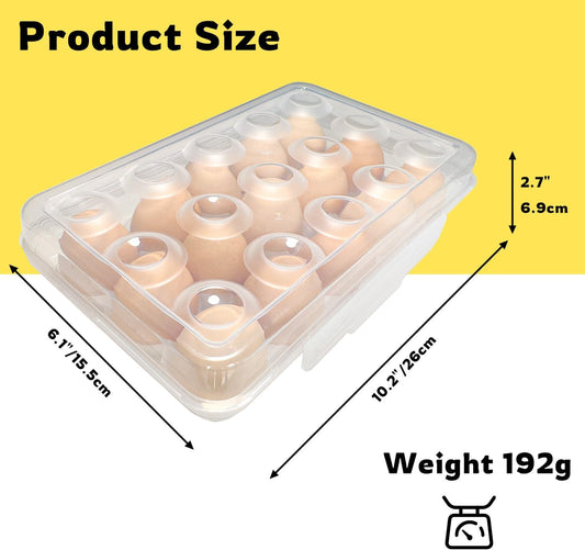 Egg Holder Camping, Egg Holder for Fridge, Clear Egg Container for Fridge With Lid, Stackable Egg Storage with Safety Buckle, Eggs 24 Count, Clear White