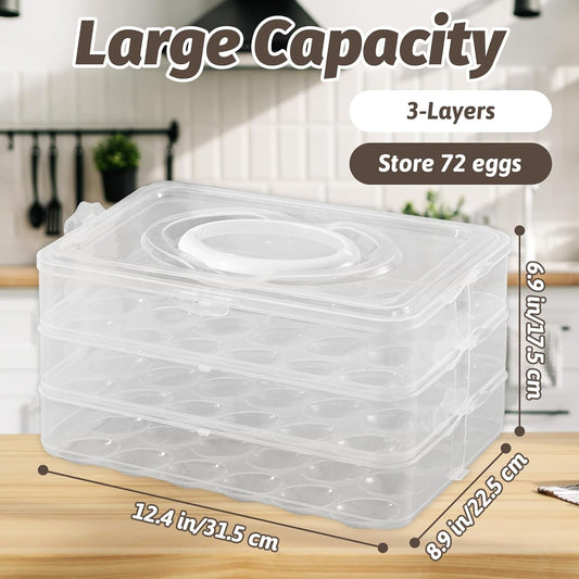 Egg Holder for 72 Eggs,3-Layer Plastic Egg Container,Deviled Egg Tray with Handle Lid,Devil Egg Holder for Refrigerator,Kitchen,Easter Party,Keep Fresh