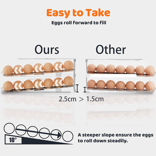 Egg Holder for Fridge, Automatic Rolling Egg Organizer for Refrigerator, Clear Plastic Egg Container & Tray, Stackable Dispenser and Storage Bin For Organizers and Storage -2 Layer