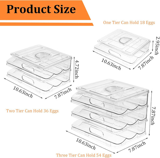 Egg Holder for Fridge Rolling Egg Container 54 Large Capacity Eggs Holder Eggs Storage Container Organizer with Lid for Refrigerator and Kitchen (3 Layer)