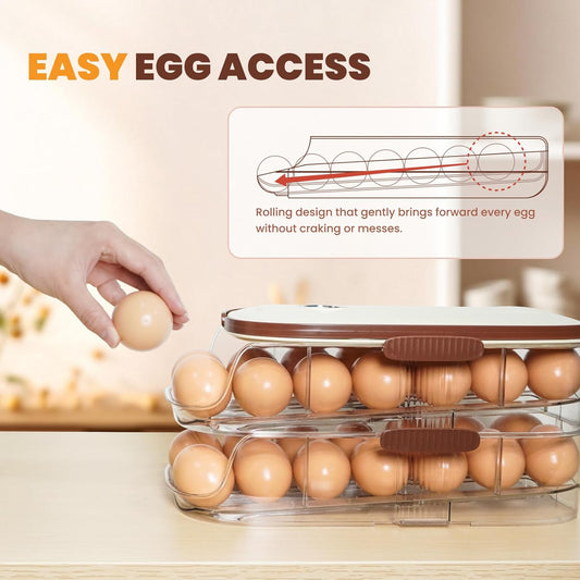 Egg Holder for Fridge, Automatic Rolling Egg Organizer for Refrigerator, Clear Plastic Egg Container & Tray, Stackable Dispenser and Storage Bin with Sturdy Lid to Saving Space -2 Layer