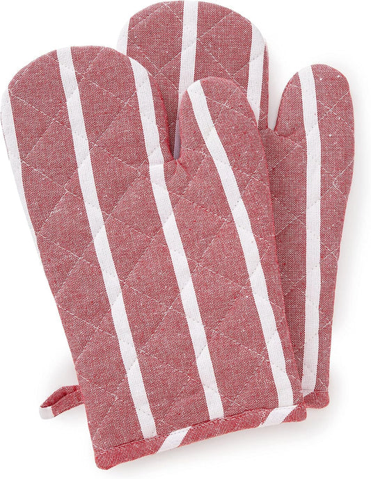 Encasa XO Long 12"x7" Oven Microwave Hand Gloves Mitts (2 pc Set) for Kitchen Cooking & Baking - Heat Resistant, Thick & Safe, Protection of Hands from Hot Utensils - Roma Red Stripes