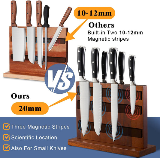 ENOKING Extra Large Magnetic Knife Block, 15.2-In Acacia Wood Knife Holder for Home Kitchen, Universal Knife Holder Stand with Strong Enhanced Magnets for Safe and Multifunctional Knife Storage