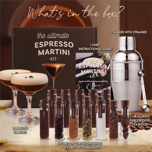 Espresso Martini Kit Gift Set– Complete Martini Maker Set with Espresso Mix, Party-Ready Accessories, and Elegant Decorations for Birthdays and Events, Birthday Gifts for Women