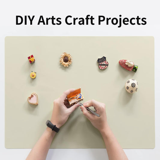 Extra Large Silicone Mats for Countertop - Counter Table Protector Placemats for Baking Crafts, Kids Dinner Placemat Nonstick Nonskid Heat-Resistant Kitchen Pad, 23.6'' x 15.7'', Beige