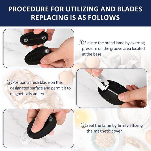 Extractable & Magnetic Bread Lame Dough Scoring Tool - Professional Sourdough Scoring Tool - Sourdough Bread Baking & Bread Scoring Tool - Scoring Patterns booklet & 5 Razor Blades (Black)