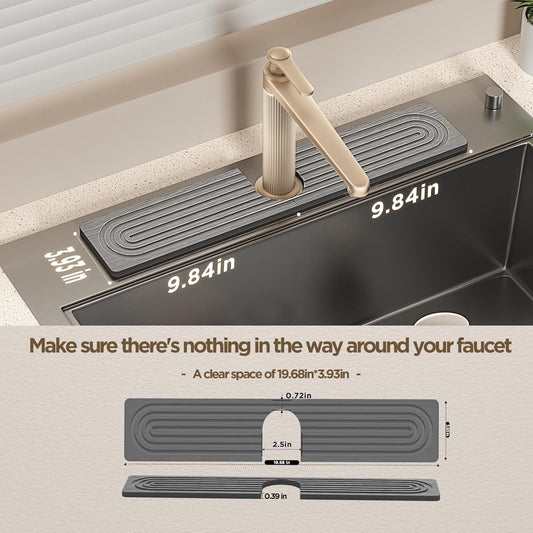 Faucet Mat for Kitchen Sink - 2024 Upgraded Premium Silicone Splash Guard with Fast Drying Properties - Protective Sink Tray Ideal for Stone Sinks in Kitchen & Bathroom (1, Gray)