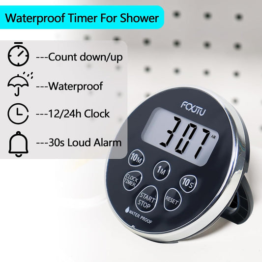 FCXJTU Digital Waterproof Shower Clock Timer, Bathroom Shower Countdown Timer for Kitchen Cooking with Alarm, Magnetic Back, Stand Silver Black