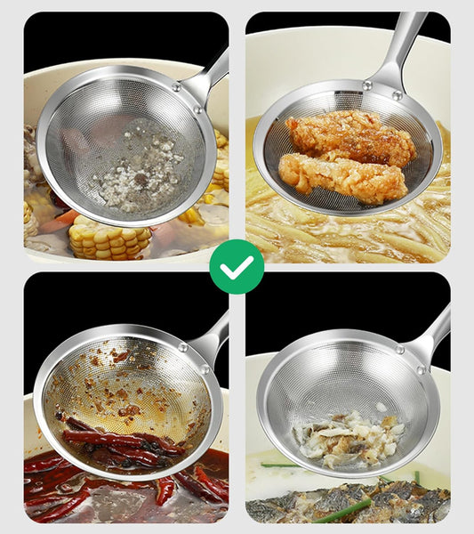 Filter Scoop Stainless Steel Fat Skimmer Spoon, Professional Skimmer Spoon Grease Filter Ladle, Oil Separator for Frying and Gravy, Commercial Kitchen Strainer (3.5 Inch & 4.3 Inch)