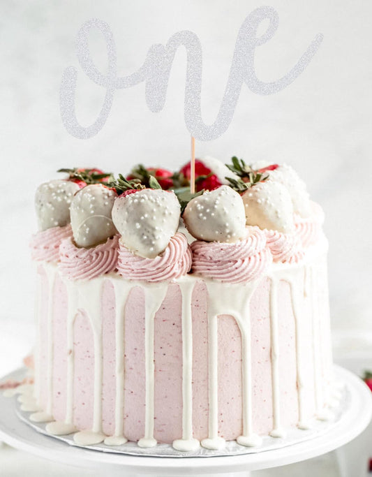 First Birthday Cake Topper - Pink Glitter One Cake Decorating Supplies for Girls and Boys, Perfect for Baby Shower/Gender Revealing Party/Baby Party Photo Booth Props