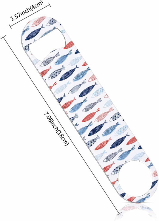 Fish Stainless Steel Bottle Opener Colorful Fishes Swimming Abstract Wildlife Blue Striped White Flat Beer Bottle Opener Keychain for Home Kitchen Bar Restaurant Party Birthday Gift