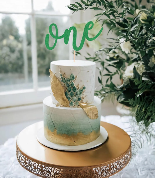 First Birthday Cake Topper - Green Glitter One Cake Decorating Supplies for Girls and Boys, Perfect for Baby Shower/Gender Revealing Party/Baby Party Photo Booth Props