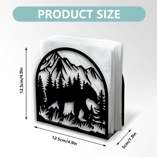 Forest Animals Mountain Decorative Black Metal Napkin Holder for Table, 4.9" x 4.9" x 1.9" Bear Standing Napkin Holder for Home Kitchen Restaurant Picnic Party Coffee Bar Dining Room