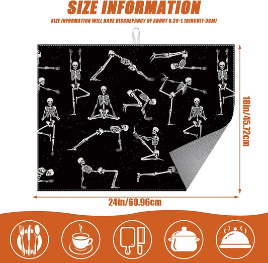 Funny Skull Yoga Dish Drying Mat for Kitchen Counter Microfiber Absorbent Dish Kitchen Drying Mat Draining Reusable Washable for Dishes/Utensils/Counterto