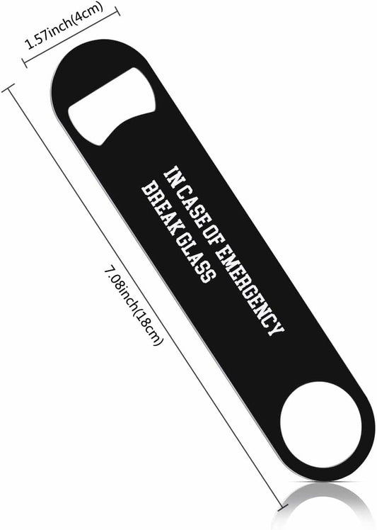 Funny Saying Quotes Stainless Steel Bottle Opener In Case of Emergency Break Glass Flat Beer Bottle Opener Keychain for Home Kitchen Bar Restaurant Party Birthday Gift