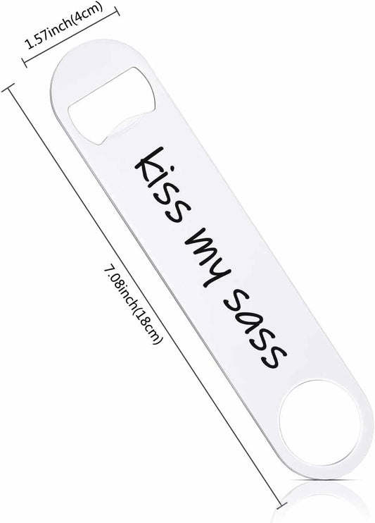 Funny Saying Stainless Steel Bottle Opener Kiss My Sass Flat Beer Bottle Opener Keychain for Home Kitchen Bar Restaurant Party Birthday Gift