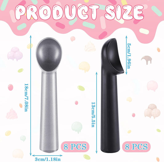 Gejoy 16 Pcs Ice Cream Scoop 7 Inch Nonstick Anti Freeze Ice Cream Scooper Aluminum Design Dessert Spoon for Gelatos Frozen Yogurt Fruit Sundaes Sorbet Almond Cookie Dough (Black and Silver)