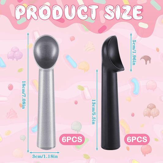 Gejoy 12 Pcs Ice Cream Scoop 7 Inch Nonstick Anti Freeze Ice Cream Scooper Aluminum Design Dessert Spoon for Gelatos Frozen Yogurt Fruit Sundaes Sorbet Almond Cookie Dough (Black and Silver)