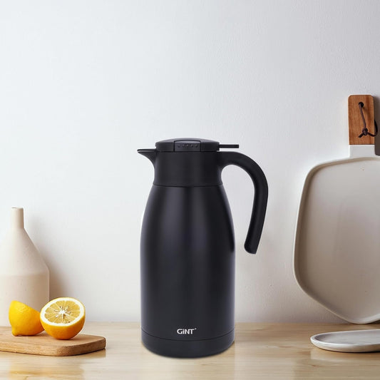 GiNT Stainless Steel Thermal Coffee Carafe, Double Walled Vacuum Water and Beverage Dispenser, 12 Hour Heat Retention, 65 OZ /1.9 Liter Black