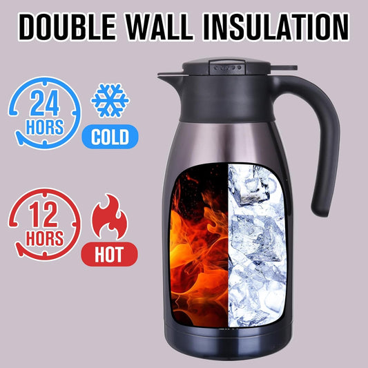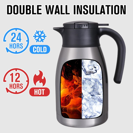 GiNT Stainless Steel Thermal Coffee Carafe, Double Walled Vacuum Water and Beverage Dispenser, 12 Hour Heat Retention, 65 OZ /1.9 Liter, Silver