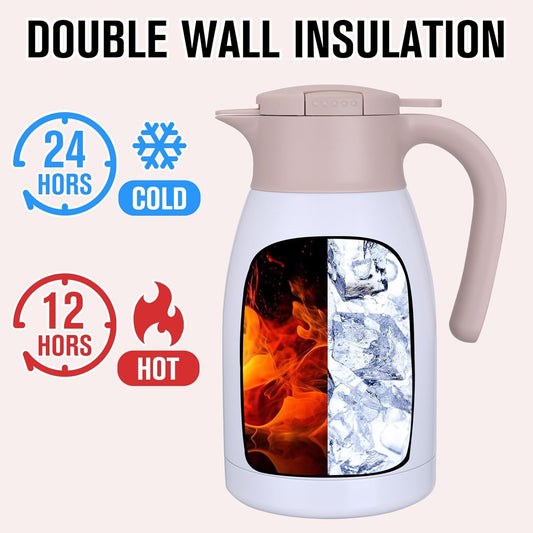 GiNT Stainless Steel Thermal Coffee Carafe, Double Walled Vacuum Thermal Carafe, Water and Beverage Dispenser,12 Hour Heat Retention,65 OZ /1.9 Liter White