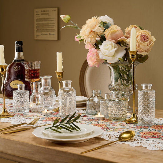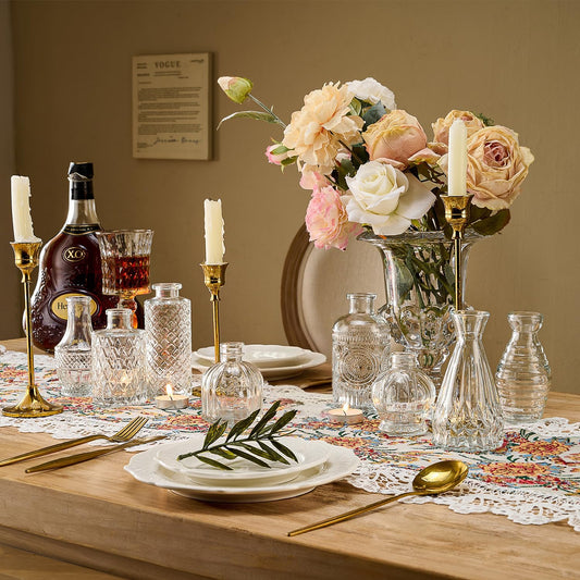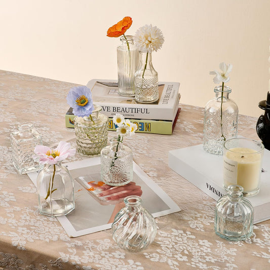 Glass Bud Vase Set of 10 Pcs, Small Clear Bud Vases for Flowers, Vintage Vases for Centerpiece Table Wedding Decorations Home Decor Glass Bottles for Birthday Party Anniversary