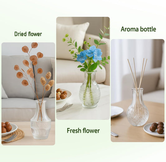 Glass Bud Vase Set of 3 Pcs, Small Clear Bud Vases for Flowers, Vintage Vases for Centerpiece Table Wedding Decorations Home Decor Glass Bottles for Birthday Party Anniversary