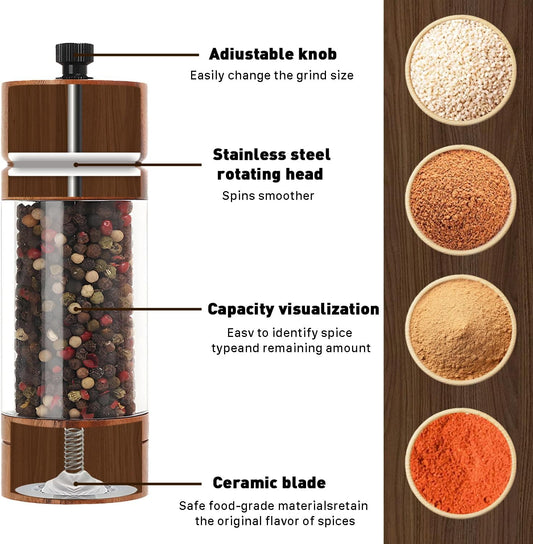 2 Pack 5.5 Inch Wood Salt and Pepper Grinder Set, Premium Acrylic Salt and Pepper Grinder Set with a Adjustable Ceramic Rotor - Made of High-Grade Acacia Wood Material