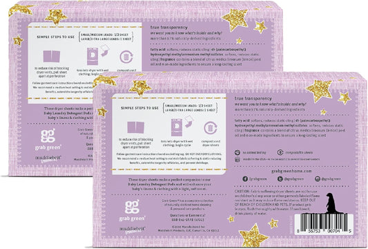 Grab Green Newborn Baby Dryer Sheets, 120 Sheets, Chamomile Scent, Plant and Mineral Based, Compostable, Softens Clothing and Linens, Reduces Static Cling
