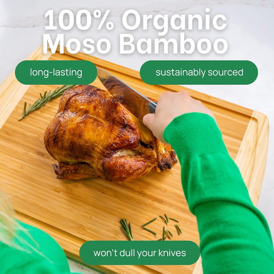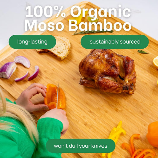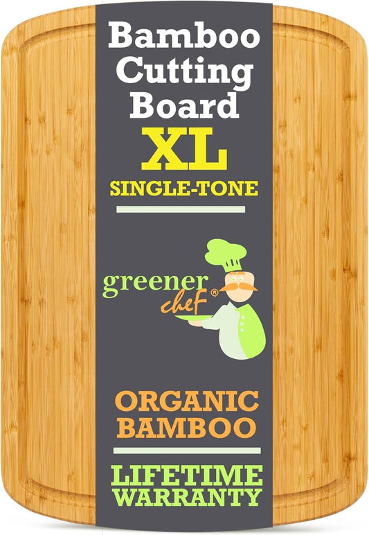 GREENER CHEF 20 Inch XL+ Organic Bamboo Cutting Board - Extra Large Butcher Block for Kitchen, Meat, Veggies, Charcuterie with Deep Juice Grooves & Lifetime Replacements
