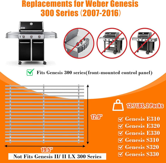 GRISUN 19.5" Grill Grates for Weber Genesis 300 Series, Genesis E310 E320 E330 S310 S320 S330 EP310 EP320, Replacement Cooking Grates for Weber 7528 7524, 304 Stainless Steel