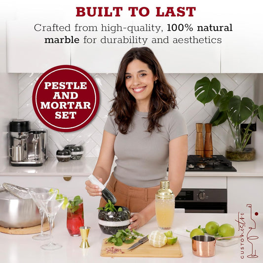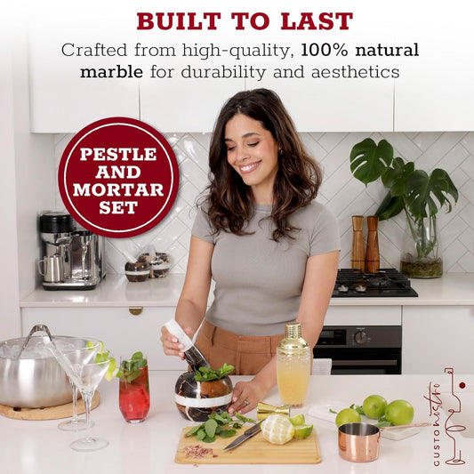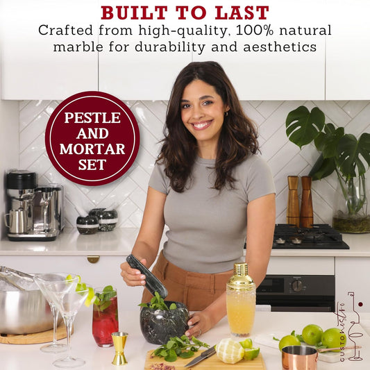 Gusto Nostro Natural Marble Mortar and Pestle Set | 5 Inch - 2.5 Cup Large Mortar Pestle Set for Grinding Herbs, Nuts, Grains | Pesto Grinding and Guacamole Stone Bowl | Marble Spice Crusher