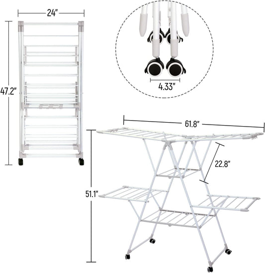 Gullwing Laundry Drying Rack, Space Saving Indoor & Outdoor Use, 61.81' x 22.84' x 51.18'