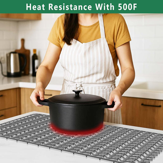 GUUKIN Sink Protectors for Kitchen Mat -30"x 16" Silicone Kitchen Sink Mat Grid for Bottom of Farmhouse Stainless Steel Porcelain with Rear Drain(Grey