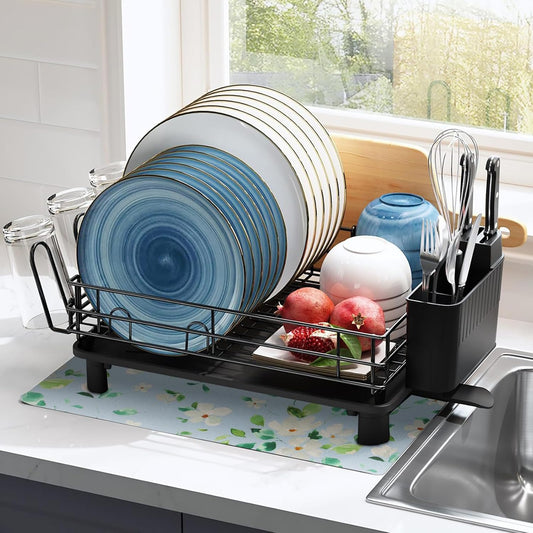 2 Pack Jasmine Dish Drying Mats For Kitchen Counter, Floral Print Dish Drying Mat - 20x15 inches, Absorbent Kitchen Counter Drying Mat, Dish Mat, Fast Drying