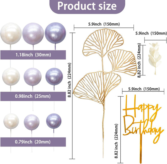 Gyufise 57Pcs Balls Cake Topper Boho Grass Cake topper Pearl Balls Acrylic Happy Birthday Cake Decorations for Wedding Baby Shower Birthday Boho Themed Party Supplies Purple