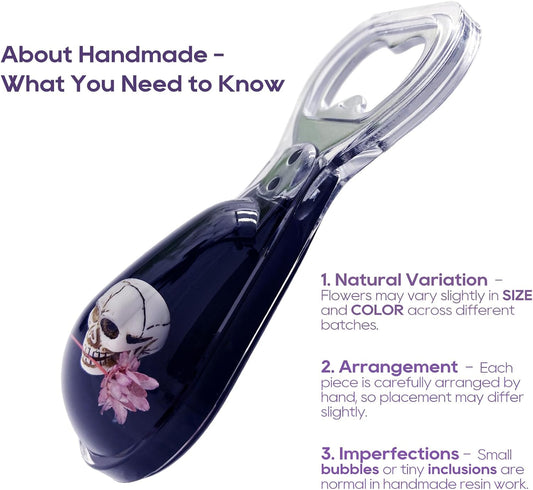 Halloween Ghost Skull Decor, Magnetic Bottle Opener, Original Design Skull Flower in Black Resin – Strong Magnet for Fridge – – Gothic Halloween Gifts - Midnight Black