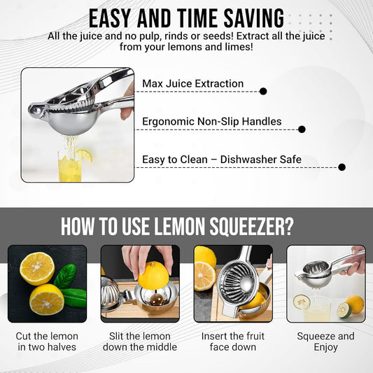 Handheld Lemon Squeezer Stainless Steel – Heavy Duty Manual Citrus Juicer for Lemon, Lime & Small Oranges – Rustproof Lemon Lime Squeezer Stainless Steel with Polished Finish & Ergonomic Grip