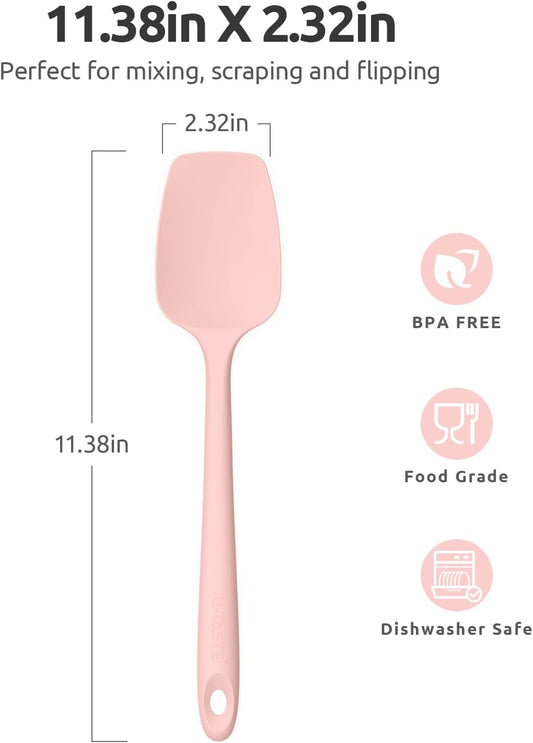 Heat Resistant Silicone Spoon Spatula: U-Taste 600ºF High Heat Flexible 11.38in Silicon Mixing Stirring Cooking Scraping Baking Bowl Scraper, Seamless for Kitchen Nonstick Cookware (Pink)