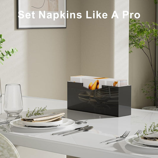 HELPLEX Black Acrylic Guest Towel & Napkin Holder - Waterproof Splash-Proof Vertical Design for Bathroom, Kitchen, Dining Table - Home Hotel Office Organizer (2-Pack)