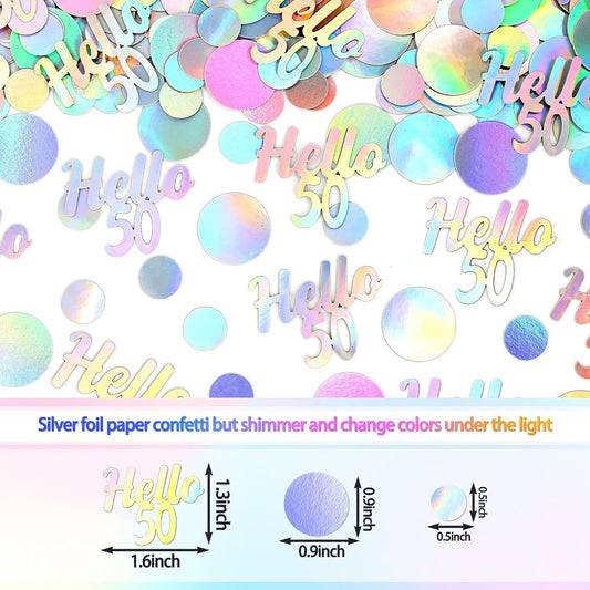 Hello 50 Birthday Confetti for Table Iridescent Circle Happy 50th Birthday Party Decorations for Women Fifty Years Old Birthday Tables Scatter Party Confetti Wedding Anniversary Decor 300PC
