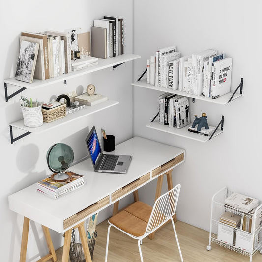Heimlove White Deep Floating Shelves for Wall, 24W x 8D Wood Wall Shelves Set of 2, Wide Floating Bookshelf for Living Room, Kitchen, Office, Bedroom and Decor Storage, with Black Bracket - White