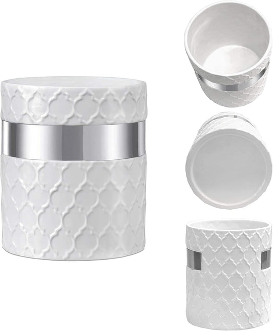 Home Acre Designs Kitchen Utensil Holder - Large Ceramic Farmhouse Countertop Crock, White/Silver