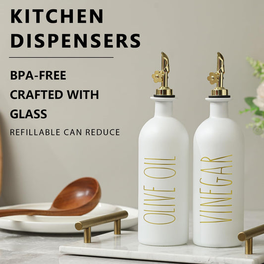 HOMCDALY Olive Oil Dispenser for Kitchen, 11.8oz Glass kitchen Dispenser Bottle, White Oil&Vinegar Cruet Set, Leakproof Oil Bottle for Cooking| Set of 2 (11.8oz – White)