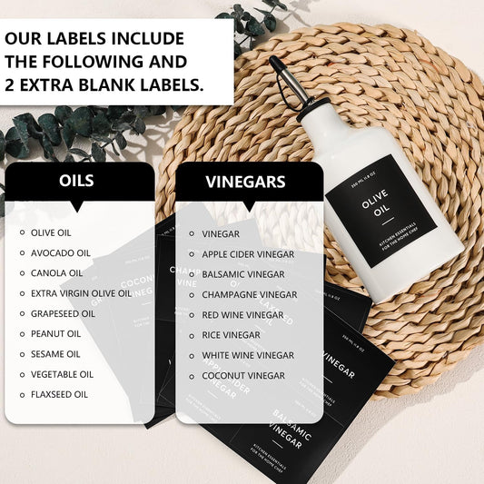 HOMCDALY Olive Oil and Vinegar Dispenser Set, 16oz Ceramic Oil Dispenser for Kitchen, Kitchen Dispenser Bottle for EVOO Vinegar Syrups, Modern Farmhouse Design| Set of 2 – P-Black&White