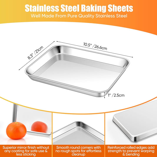 Homikit 2 Pack Baking Sheet, 10 x 8 Inch Stainless Steel Cookie Tray Set for Cooking Toasting, Small Metal Toaster Oven Baking Pan Non Stick, Rustproof & Mirror Finish, Dishwasher Safe